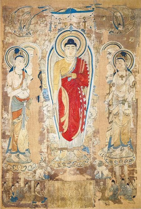 唐代中期,9世紀(jì),絹本設(shè)色,高101.6厘米,寬58.5厘米,英國不列顛博物館藏