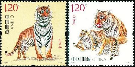 2022年是農(nóng)歷壬寅年,即“虎”年,中國郵政于1月5日發(fā)行《壬寅年》特種郵票,全套2枚。這是中國郵政發(fā)行的第四輪生肖郵票的第七套?;⒛晟む]票仍然延續(xù)了第四輪生肖郵票的“家國”理念:兩枚郵票分別展示了國家的期許、家庭的企盼,組合而成濃濃的新春祝福。
