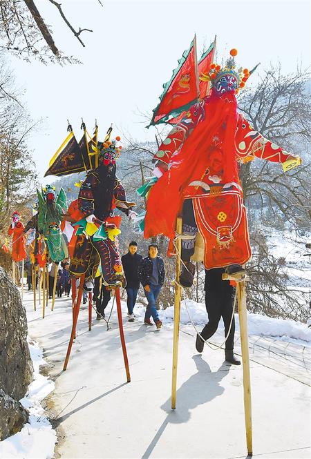 在鑼鼓聲中,清水縣鄉(xiāng)村社火隊(duì)走鄉(xiāng)串村,把歡樂(lè)帶給父老鄉(xiāng)親;慶城縣翟家河鄉(xiāng)程家河村村民組織社火隊(duì)在村部廣場(chǎng)表演傳統(tǒng)社火,向村民表達(dá)新春的祝福;靜寧縣賈河鄉(xiāng)中堡村下堡社充滿鄉(xiāng)土氣息的年俗活動(dòng)打破了寂靜的山村,讓年味更濃,也將傳統(tǒng)文化沁潤(rùn)到人們心中。