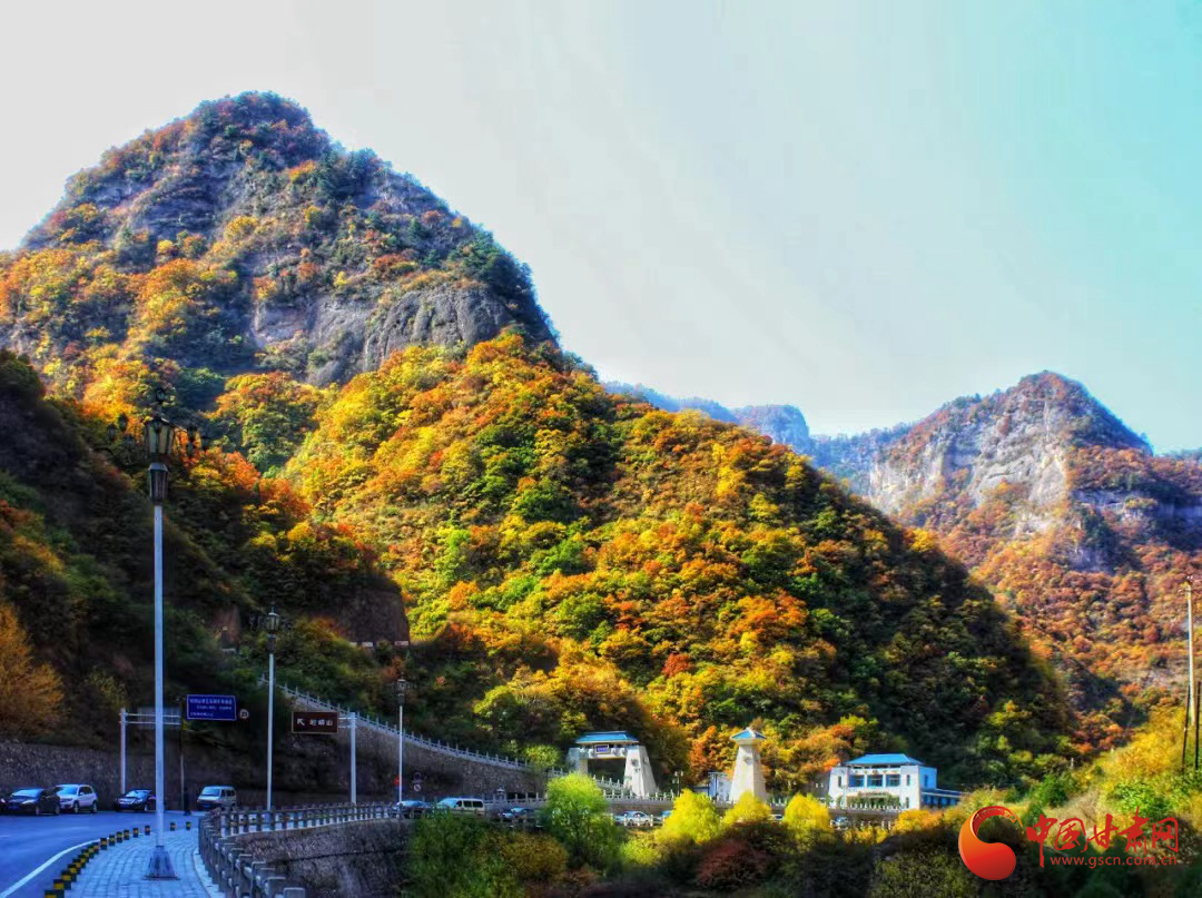 綠色、紅色,橘色……9月27日,秋日的崆峒山層林盡染、五彩斑斕,不同的色彩組合在一起,如同油畫般,美不勝收。