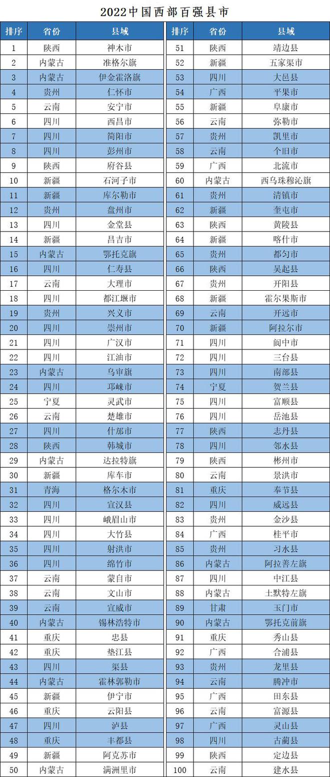 《中國(guó)西部地區(qū)縣域發(fā)展監(jiān)測(cè)報(bào)告》由競(jìng)爭(zhēng)力智庫(kù)、北京中新城市規(guī)劃設(shè)計(jì)研究院等機(jī)構(gòu)聯(lián)合編制,監(jiān)測(cè)評(píng)價(jià)對(duì)象為西部12個(gè)?。ㄗ灾螀^(qū)、直轄市)的全部縣域單位,從經(jīng)濟(jì)規(guī)模、人民生活、經(jīng)濟(jì)活力、發(fā)展質(zhì)量等四個(gè)方面進(jìn)行評(píng)價(jià),四個(gè)分項(xiàng)指數(shù)合成競(jìng)爭(zhēng)力指數(shù)。其中,縣(縣級(jí)市、自治縣、旗、自治旗、特區(qū))競(jìng)爭(zhēng)力指數(shù)前100名為“中國(guó)西部地區(qū)綜合競(jìng)爭(zhēng)力百?gòu)?qiáng)縣市”,簡(jiǎn)稱“中國(guó)西部百?gòu)?qiáng)縣市”或“西部百?gòu)?qiáng)縣”;市轄區(qū)競(jìng)爭(zhēng)力指數(shù)前100名為“中國(guó)西部地區(qū)綜合競(jìng)爭(zhēng)力百?gòu)?qiáng)區(qū)”,簡(jiǎn)稱“中國(guó)西部百?gòu)?qiáng)區(qū)”或“西部百?gòu)?qiáng)區(qū)”。今年,課題組在開(kāi)展西部地區(qū)縣域發(fā)展監(jiān)測(cè)評(píng)價(jià)的基礎(chǔ)上,還聯(lián)合有關(guān)單位和專家,分區(qū)域、分類型總結(jié)了“2022中國(guó)西部地區(qū)縣域高質(zhì)量發(fā)展典型案例”,準(zhǔn)格爾旗、平果市、仁壽縣、彭州市、瀘縣、吳起縣、玉門市、開(kāi)陽(yáng)縣、大竹縣、彬州市、成都市雙流區(qū)、西安市雁塔區(qū)、昆明市官渡區(qū)、包頭市昆都侖區(qū)、克拉瑪依市克拉瑪依區(qū)、貴陽(yáng)市觀山湖區(qū)、南寧市青秀區(qū)、蘭州市城關(guān)區(qū)、西寧市城西區(qū)、銀川市興慶區(qū)等20個(gè)縣(市、區(qū))入選典型案例名單,供全國(guó)交流學(xué)習(xí)。