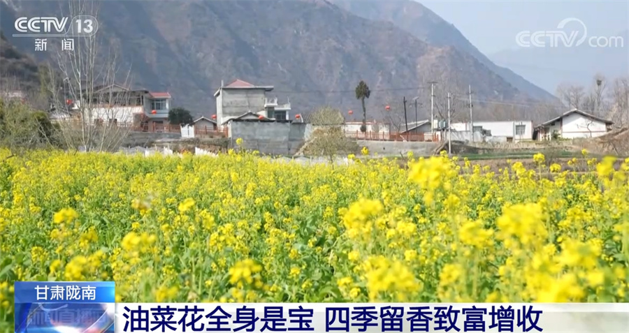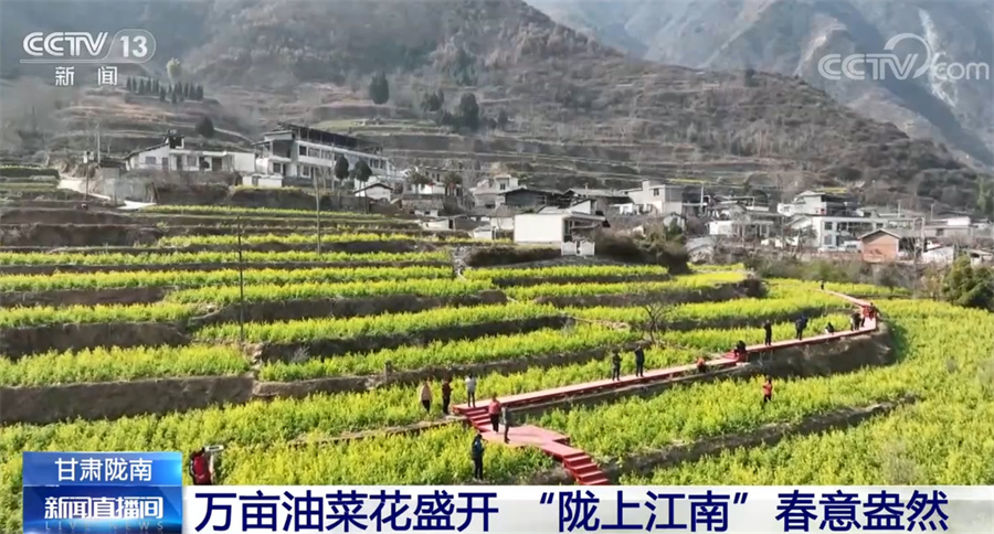 央視網(wǎng)消息:甘肅省地處西北腹地,但在其最南端的隴南市,山間的油菜花從臘月開(kāi)始就逐漸開(kāi)放,如今已經(jīng)進(jìn)入了盛花期,一派欣欣向榮的景象,給西北的初春增添了蓬勃生機(jī)。