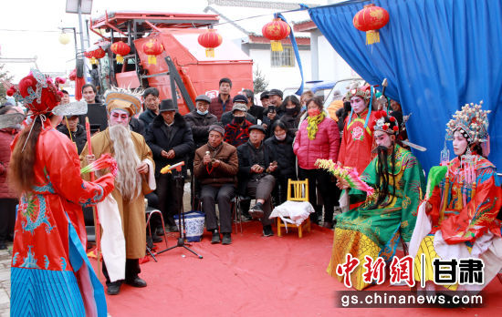中新網(wǎng)甘肅新聞2月8日電 (朱玲)農(nóng)歷正月,走進(jìn)華亭市西華鎮(zhèn)西塬村,山村隱掩處,遠(yuǎn)遠(yuǎn)聽(tīng)聞古樸蒼勁的戲曲腔調(diào)傳來(lái)。村部院落里,村民或站或蹲,里三層外三層地將表演者圍了個(gè)水泄不通。