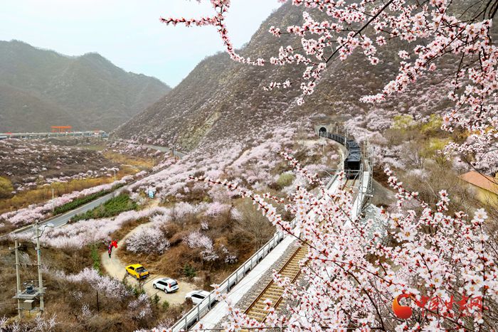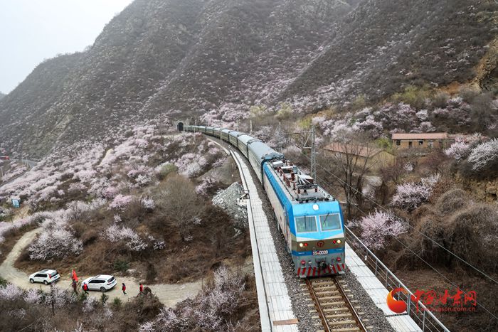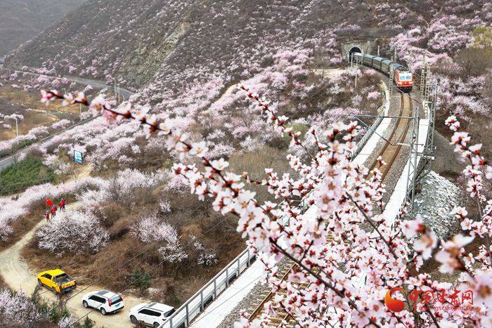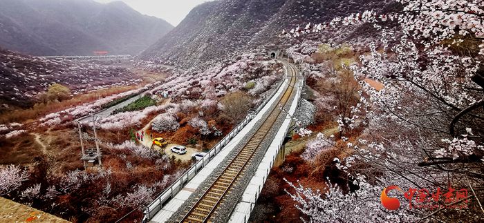 陽春三月,桃之夭夭。在崇信縣的漫山遍野上,朵朵桃花迎來盛放期。微風(fēng)吹來,暗香浮動(dòng)。近看,朵朵嬌俏的桃花層層疊疊,錯(cuò)落有致。遠(yuǎn)看,漫山紅遍如霞似錦,爛漫壯觀。特別是一列列火車穿行而過,與桃花撞了個(gè)滿懷,奔向充滿希望的春天。