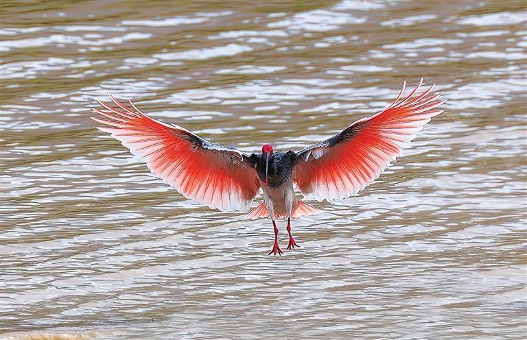 中國甘肅網(wǎng)4月24日訊 據(jù)蘭州晨報(bào)報(bào)道(奔流新聞·蘭州晨報(bào)通訊員王騫瑤 記者梁峽林)4月20日,朱鹮現(xiàn)身隴南武都區(qū)白龍江畔,隴南市愛鳥攝影協(xié)會(huì)會(huì)員拍攝了難得的畫面。這是武都區(qū)境內(nèi)近70年來第一次發(fā)現(xiàn)野生朱鹮蹤跡!