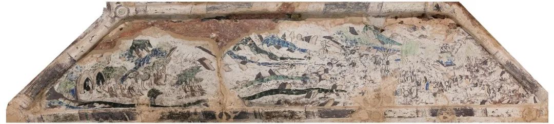隋唐時(shí)期是麥積山石窟歷史上的一個(gè)重要轉(zhuǎn)折階段,根據(jù)對(duì)麥積山崖面現(xiàn)存窟龕綜合考察分析,可知到北周時(shí),壁面上已是窟龕密布,幾乎已經(jīng)沒有多少可供利用的位置。這一時(shí)期現(xiàn)存窟龕主要有第5、8、10、13、24、37等窟,多為隋代開鑿。其中第5窟完成于初唐,繪制于右側(cè)大龕外壁上方的西方凈土變,場(chǎng)景壯觀、人物眾多,是唐代壁畫的杰出之作。
