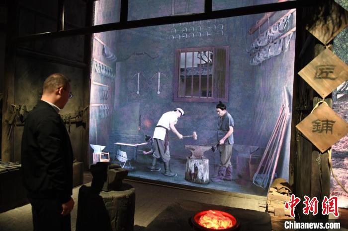 圖為游客在大漢賦館內參觀鐵匠鋪?!〈魑牟?nbsp;攝