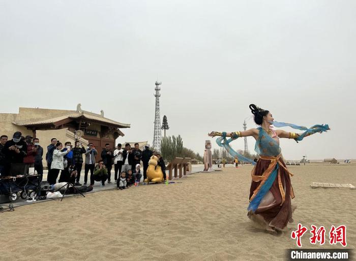 近年來,敦煌市委網(wǎng)信辦以“壁畫變裝秀”“飛天舞蹈短視頻”“漫說敦煌歷史”等形式,弘揚敦煌文化。6月以來,內(nèi)地很多敦煌舞愛好者涌向敦煌,穿上以飛天服飾為代表的各種古裝,在絲綢之路旅游網(wǎng)紅“打卡地”鳴沙山月牙泉、玉門關(guān)、陽關(guān)等景區(qū)拍照、直播,各種不同的古裝服飾也為“大漠孤煙直”的絲路古道增添了無限色彩。