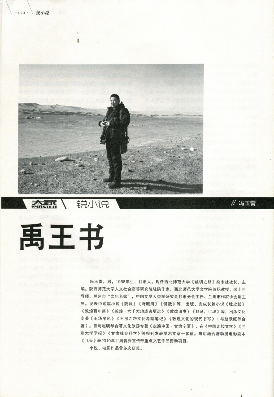 馮玉雷,畢業(yè)于陜西師范大學(xué)中文系,現(xiàn)任甘肅文化發(fā)展研究院常務(wù)副院長。一級作家。陜西師范大學(xué)人文社會科學(xué)高等研究院特聘駐院作家,上海交通大學(xué)神話學(xué)研究院學(xué)術(shù)委員,蘭州金城文化名家,中國比較文學(xué)學(xué)會文學(xué)人類學(xué)研究會理事。中國作家協(xié)會會員。馮玉雷自2006年開始研究玉玉器和玉文化,在《甘肅社會科學(xué)》《寧夏社會科學(xué)》《中國社會科學(xué)報(bào)》《中國藝術(shù)報(bào)》等報(bào)刊發(fā)表玉文化學(xué)術(shù)論文多篇。出版長篇小說《敦煌·六千大地或者更遠(yuǎn)》《敦煌遺書》《野馬,塵埃》《禹王書》及玉文化專著《玉華帛彩》《玉帛之路文化考察記》《條條玉路通昆侖》等。中篇小說《禹王書》入圍第八屆魯迅文學(xué)獎。榮登《大家》2020年第1期封面人物。