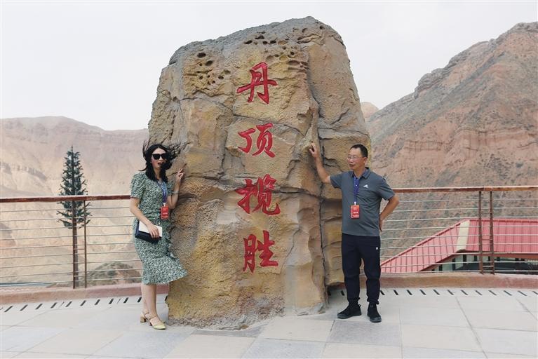 “這里綿延分布的彩色丘陵,好似與天際線融為了一體,勝似彩虹垂天。”王笑君是一名律師,平日里緊張忙碌的工作,總讓他不由自主有一種想逃離城市喧囂、回歸自然懷抱的愿望,機(jī)緣巧合之下他便選擇了水墨丹霞。他感慨地說:“真是挺難忘的,一眼望去,那五顏六色在陽光下濃烈的交織在一起,好似一幅無邊無際的潑墨山水,美不勝收。”