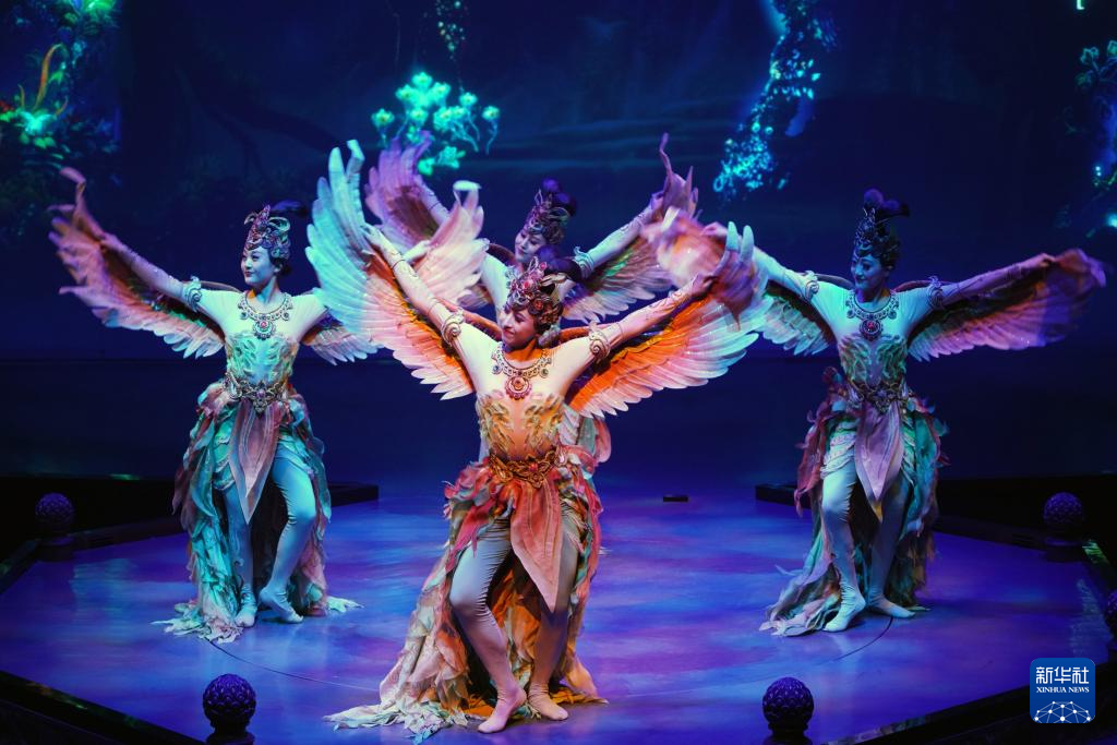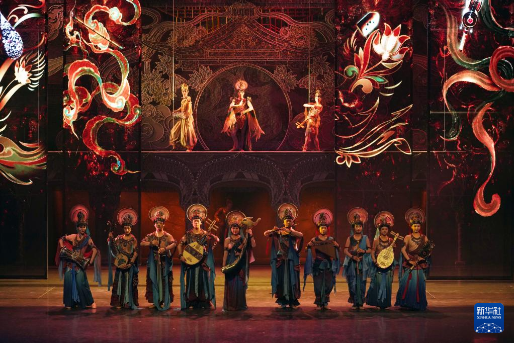 8月9日,演員在《樂動(dòng)敦煌》中表演。新華社記者 馬寧 攝