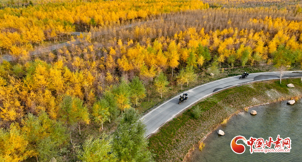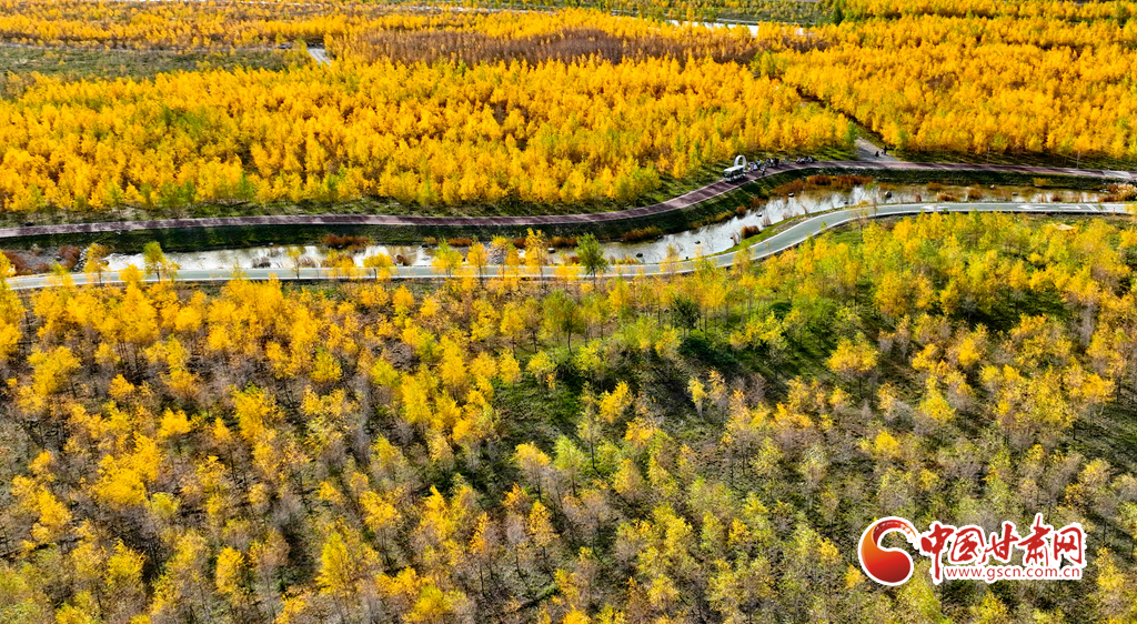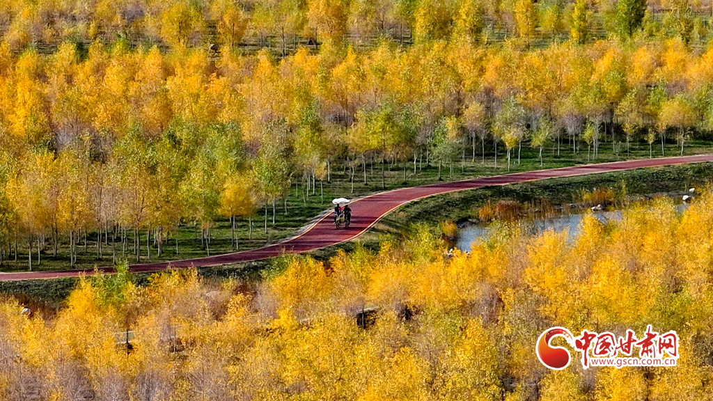 10月16日,甘肅省張掖奧林匹克森林公園萬畝人工胡楊林景區(qū)內(nèi),層林盡染、碧水環(huán)流,成為游客和市民欣賞美景和健魄身心的好去處。