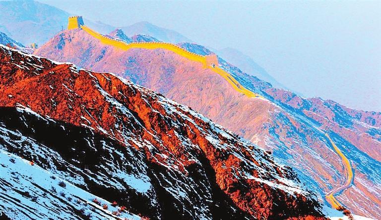 我國(guó)的長(zhǎng)城與山自古相依相連,有的借山勢(shì)呈現(xiàn)出波瀾壯闊的畫(huà)面,有的和山體共同延伸向遠(yuǎn)處云端,蜿蜒不絕。