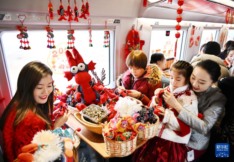 當(dāng)日,中國(guó)鐵路濟(jì)南局集團(tuán)有限公司青島客運(yùn)段在齊魯環(huán)游線G6955次列車(chē)上開(kāi)展“年俗非遺進(jìn)高鐵”活動(dòng),讓旅客在旅途中感受傳統(tǒng)文化的魅力,營(yíng)造濃郁的節(jié)日氛圍。