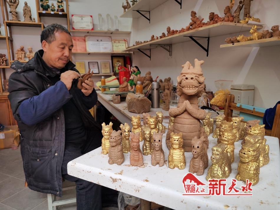 趙旭輝告訴記者,每年春節(jié)他都會創(chuàng)作一些生肖元素的泥塑作品,希望用傳統(tǒng)藝術(shù)表達(dá)對新春的美好愿景。今年也不例外,他依舊創(chuàng)作了一些以龍為主題的泥塑作品。