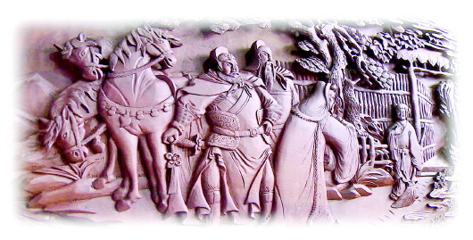因著榜沙河的滋潤,“民武”木雕擺件大多采用本地質(zhì)地細密堅韌、不易變形的梨木,所刻作品溫潤而不浮躁,沉穩(wěn)而不輕浮。最具特色的是,在題材選取上極富傳統(tǒng)文人氣息,尤其是施彩擺件,具有較高的藝術(shù)水準。這些千姿百態(tài)的圖案,將生活場景和神話故事有機融合在一起,高大悠遠、古拙秀雅,達到了“變形不失真,夸張亦傳神”的藝術(shù)境界。