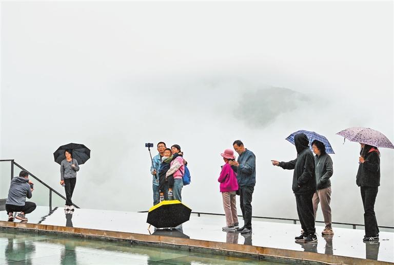 在綿綿細雨中,麥積奇峰時隱時現(xiàn),吸引游客慕名而來感受“麥積煙雨”的魅力。新甘肅·甘肅日報記者 田 蹊
