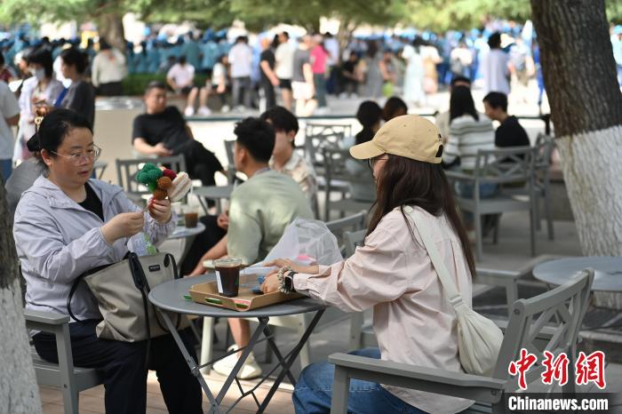 6月19日,甘肅省博物館藝術(shù)生活館在甘肅蘭州開館。該館是甘肅省博物館打造的一處復(fù)合型高價(jià)值文化空間,融合了咖啡、烘焙、展覽、藝術(shù)書店、文創(chuàng)銷售等多樣化業(yè)態(tài)。圖為游客相互交流挑選的綠馬玩偶掛件。中新社記者 李亞龍 攝
