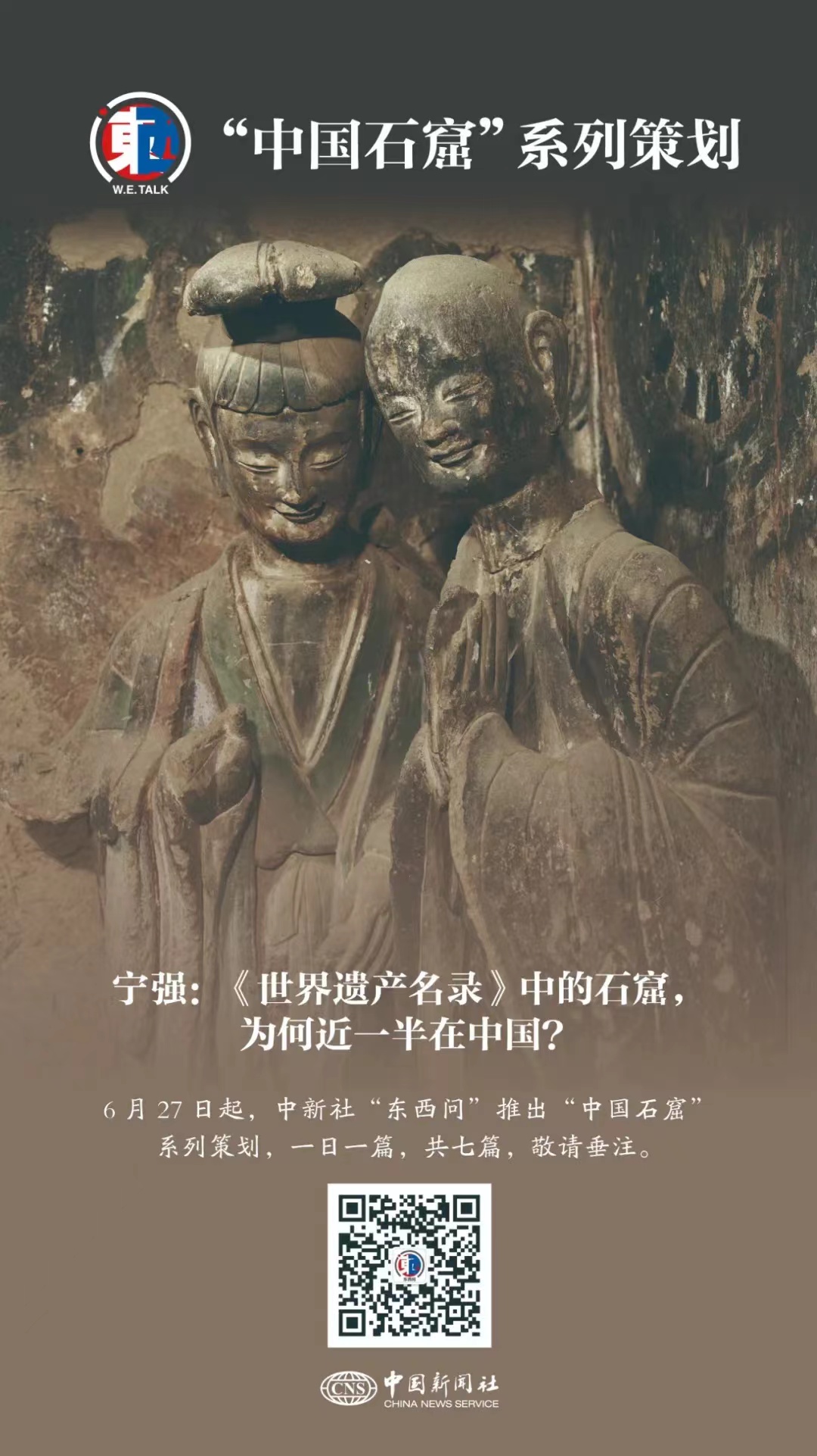 石窟,凝結人類智慧,匯聚多元文化,記錄文明交流。作為石窟遺產大國,中國石窟璀璨如繁星,散落中華大地,串聯(lián)中華文明發(fā)展足跡,勾勒中外文化交流圖景。中新社“東西問”自6月27日起特推出“中國石窟”系列策劃,帶讀者穿越古今,一眼千年,領略中國石窟之美,洞見文明互鑒之光。