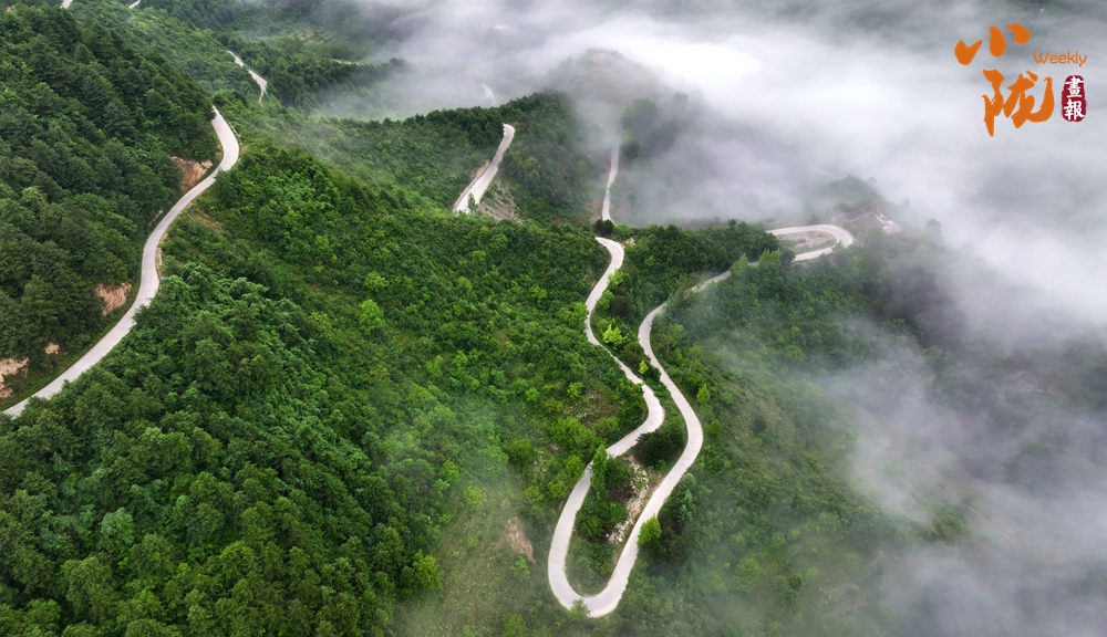 青翠的山嶺之間,云海依著山勢如潮水般涌動,待云海稍退,云層掩映下那玉帶似的盤山公路蜿蜒于崇山峻嶺之中,壯麗而神秘。