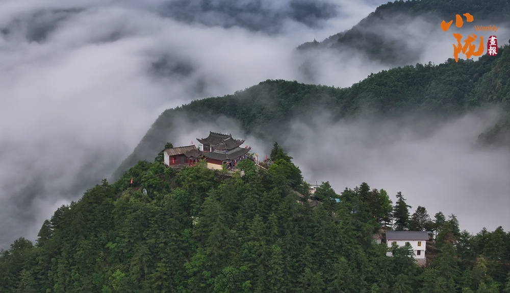 白霧覆蓋山巒、金殿聳立山巔。獨特的地質(zhì)奇觀與云海相襯,構(gòu)成一幅天宮仙境……