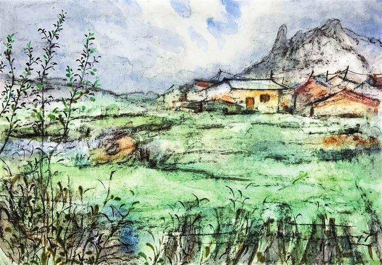 平常在畫室里畫畫時(shí),喜歡用淡淡的墨色體會與宣紙碰撞所散發(fā)出的獨(dú)特墨韻。但是描摹西部,需要更加深厚、絢爛、豐富的色彩,才能表達(dá)我們的感受,寄予我們對這片土地的深情。離開故土,踏向遠(yuǎn)方,那份對家鄉(xiāng)的無盡思念和深深眷戀,是每一位游子心中難以言喻的情感,如同無形的紐帶,將我們與故鄉(xiāng)緊緊相連。這種情感,如同西北高原上那連綿不絕的山脈,既遙遠(yuǎn)又清晰,既冷峻又溫暖。