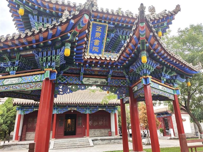五泉書院靜靜地坐落在公園的北側。兩百多年的書院,時空的氣息里,仍然氤氳著古老的書香之靈動。眼前幻化出當年的那些身著長袍、儀態(tài)從容的學子們,按部就班地開始了新的一天。