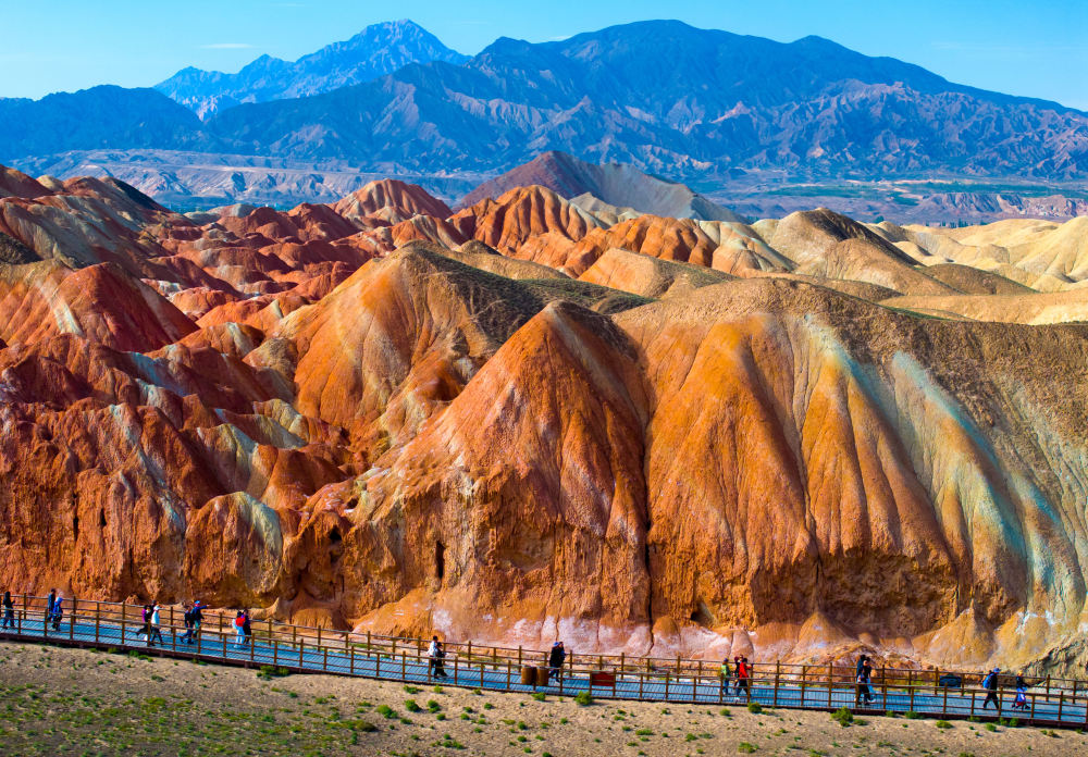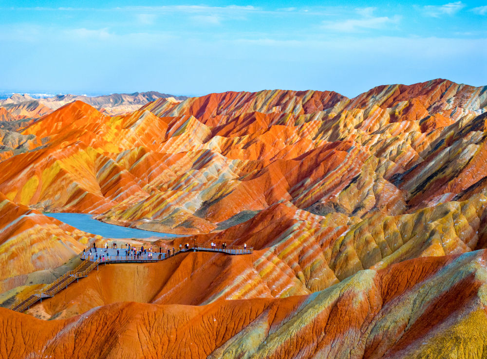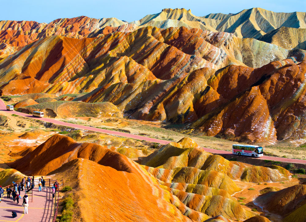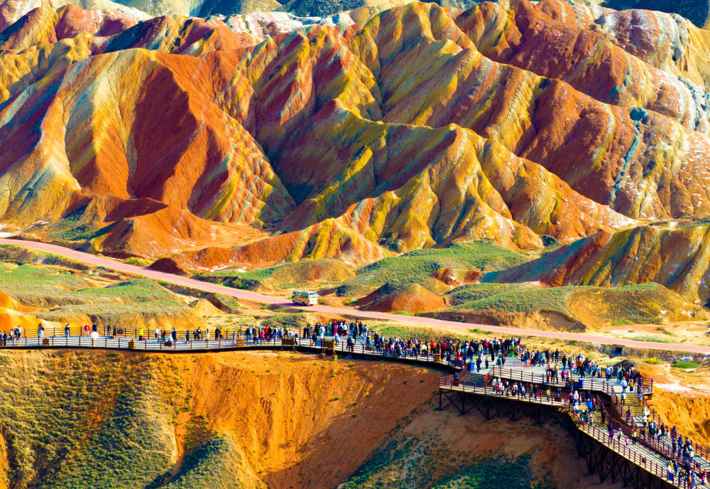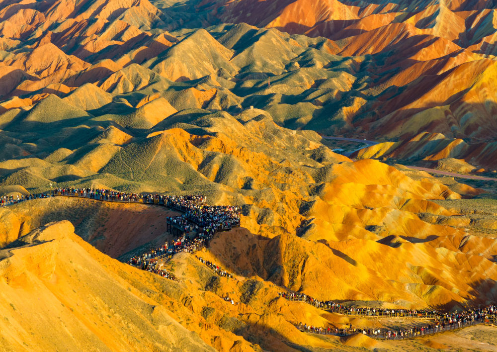 入秋以來,甘肅省張掖市臨澤縣七彩丹霞景區(qū)迎來游客高峰。丹霞地貌色彩艷麗、造型奇特,使游客仿佛置身畫境,令人流連忘返。