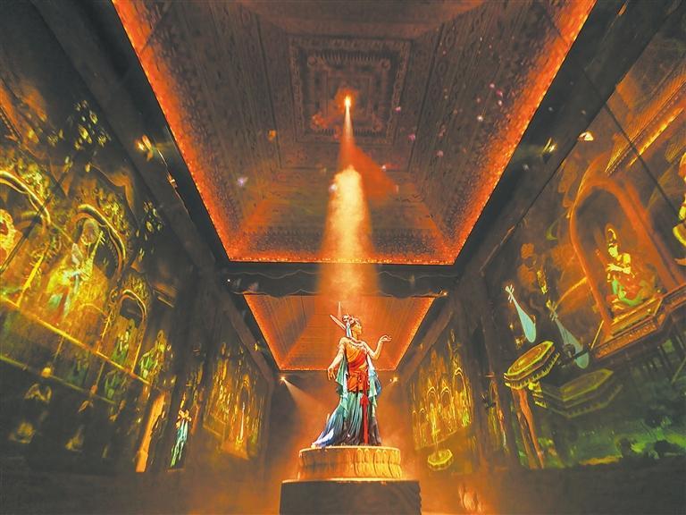 近年來,敦煌借助豐厚的旅游文化資源快速出圈,旅游項(xiàng)目供給不斷豐富,游客多樣化、高品質(zhì)的旅游需求不斷被滿足。其中《樂動敦煌》作為全球首部洞窟式沉浸體驗(yàn)劇,自開演以來好評如潮。該劇在文化書寫、空間營造、科技賦能、審美引領(lǐng)、研學(xué)實(shí)訓(xùn)等方面逐步拓展旅游演藝新邊界。