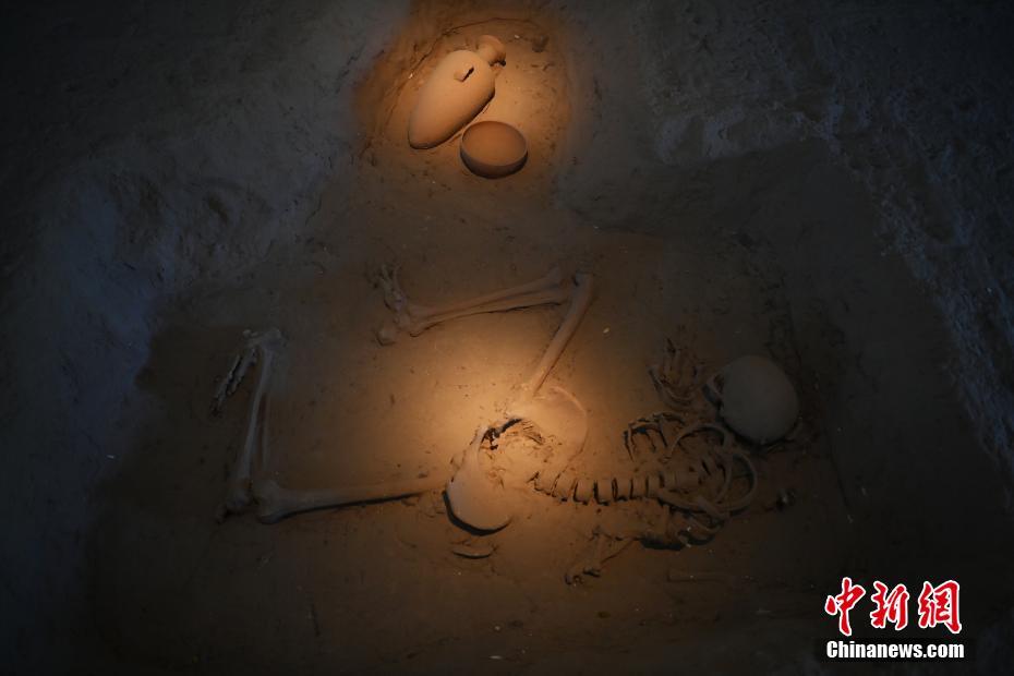 ?。保霸拢玻踩眨玻埃玻辞嗄隄h學(xué)家研修計(jì)劃甘肅班團(tuán)隊(duì)22個(gè)國家的青年漢學(xué)家,走進(jìn)甘肅省天水市秦安縣大地灣遺址參觀并進(jìn)行專題研修。大地灣遺址是新石器時(shí)代大型聚落遺址,出土了中國乃至世界上最早的彩陶文化、最早的文字符號、種植生產(chǎn)了中國第一批糧食品種黍、出現(xiàn)了最早的宮殿式建筑、發(fā)明了世界最早的水泥地面、創(chuàng)造了最早的繪畫作品——F411地畫。圖為大地灣博物館墓葬701。中新社記者 李亞龍 攝