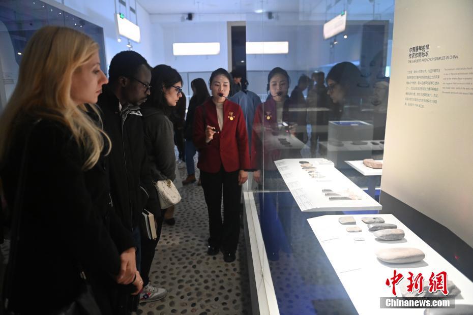 10月22日,2024青年漢學(xué)家研修計(jì)劃甘肅班團(tuán)隊(duì)22個(gè)國家的青年漢學(xué)家,走進(jìn)甘肅省天水市秦安縣大地灣遺址參觀并進(jìn)行專題研修。大地灣遺址是新石器時(shí)代大型聚落遺址,出土了中國乃至世界上最早的彩陶文化、最早的文字符號、種植生產(chǎn)了中國第一批糧食品種黍、出現(xiàn)了最早的宮殿式建筑、發(fā)明了世界最早的水泥地面、創(chuàng)造了最早的繪畫作品——F411地畫。圖為22國青年漢學(xué)家參觀大地灣博物館。中新社記者 李亞龍 攝