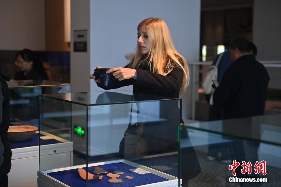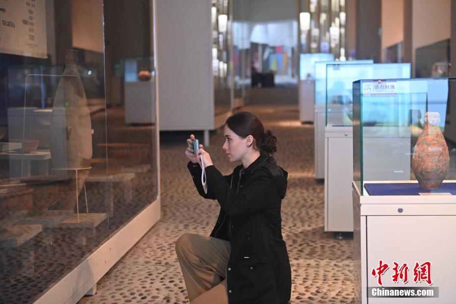 10月22日,2024青年漢學(xué)家研修計(jì)劃甘肅班團(tuán)隊(duì)22個(gè)國家的青年漢學(xué)家,走進(jìn)甘肅省天水市秦安縣大地灣遺址參觀并進(jìn)行專題研修。大地灣遺址是新石器時(shí)代大型聚落遺址,出土了中國乃至世界上最早的彩陶文化、最早的文字符號、種植生產(chǎn)了中國第一批糧食品種黍、出現(xiàn)了最早的宮殿式建筑、發(fā)明了世界最早的水泥地面、創(chuàng)造了最早的繪畫作品——F411地畫。圖為國外青年漢學(xué)家拍攝大地灣博物館藏品。中新社記者 李亞龍 攝