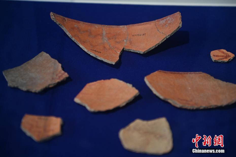 ?。保霸拢玻踩?,2024青年漢學(xué)家研修計(jì)劃甘肅班團(tuán)隊(duì)22個(gè)國家的青年漢學(xué)家,走進(jìn)甘肅省天水市秦安縣大地灣遺址參觀并進(jìn)行專題研修。大地灣遺址是新石器時(shí)代大型聚落遺址,出土了中國乃至世界上最早的彩陶文化、最早的文字符號、種植生產(chǎn)了中國第一批糧食品種黍、出現(xiàn)了最早的宮殿式建筑、發(fā)明了世界最早的水泥地面、創(chuàng)造了最早的繪畫作品——F411地畫。圖為大地灣博物館展品最早的文字符號彩繪符號陶片。中新社記者 李亞龍 攝