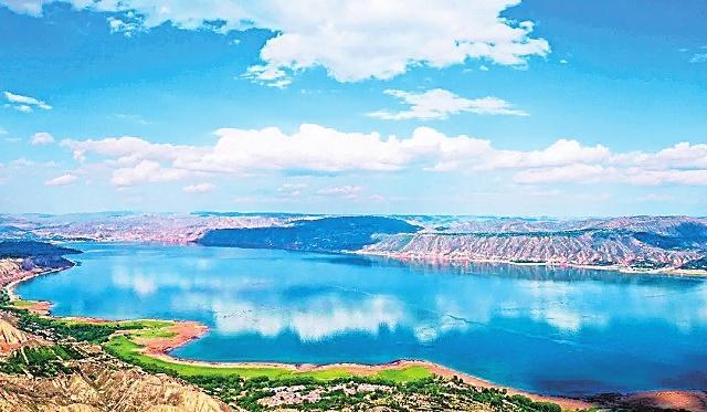 炳靈湖 雄偉的劉家峽大壩阻斷黃河,在永靖境內(nèi)聚成了一座高峽平湖。因這座湖毗鄰炳靈寺石窟和雄奇險(xiǎn)秀的炳靈石林,故稱(chēng)其為炳靈湖。整個(gè)湖水,在夏秋季呈綠色,就像一塊翡翠鑲嵌在群山之中,散發(fā)著耀眼的光芒,夏秋呈翡翠色,冬春呈藍(lán)色,由于水質(zhì)清澈,群山倒映水中,水天一色,加之湖面廣闊無(wú)垠,看上去平靜如海。但每當(dāng)劉家峽水庫(kù)泄洪的時(shí)候,磅礴的氣勢(shì)猶如蛟龍出水,翻江倒海,氣沖云天。