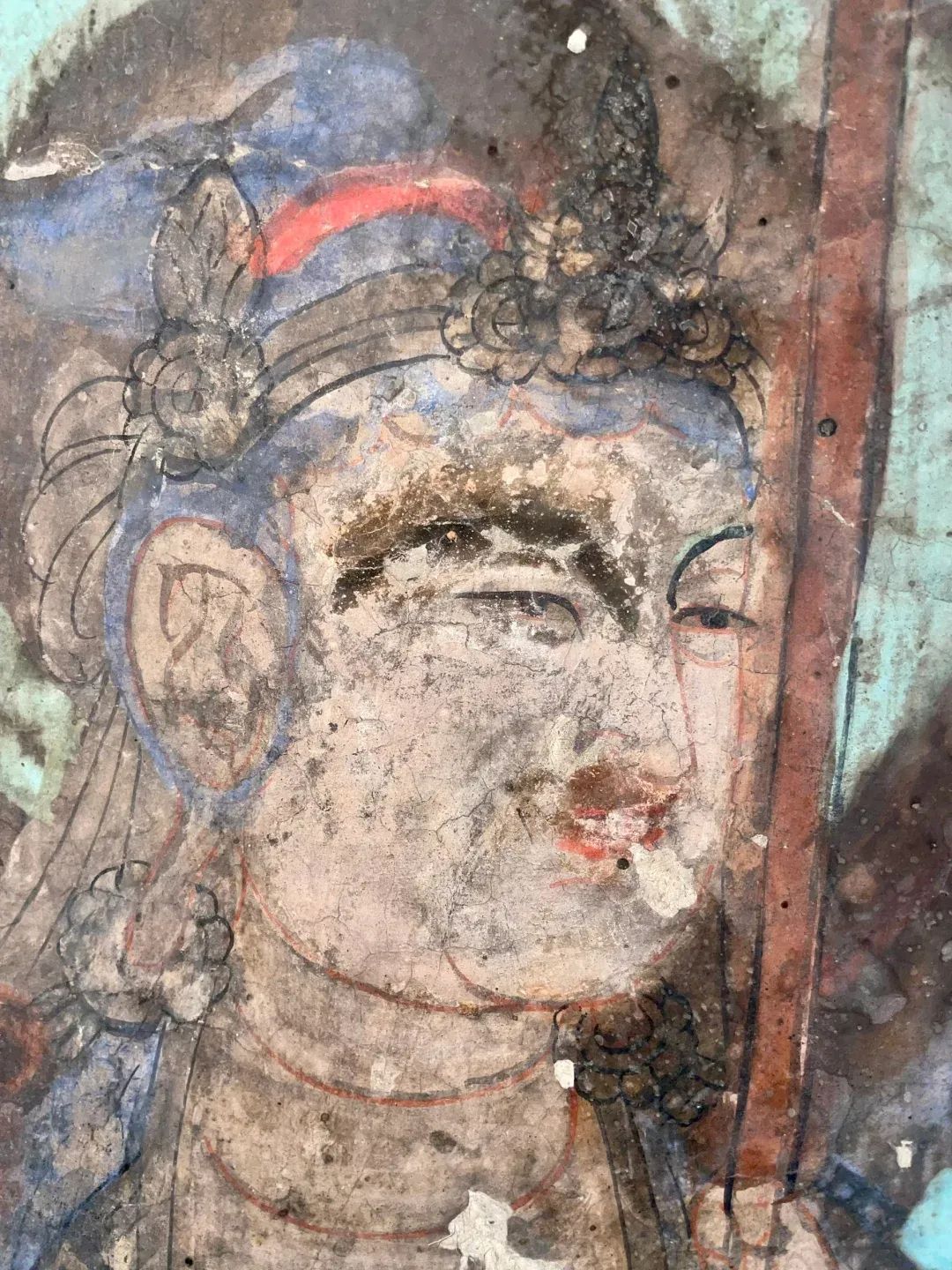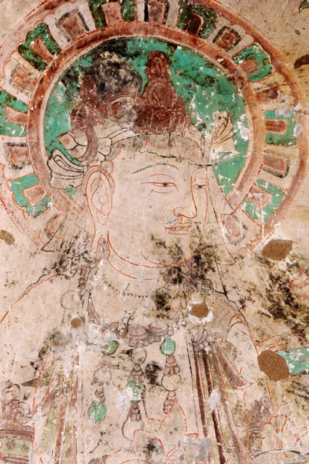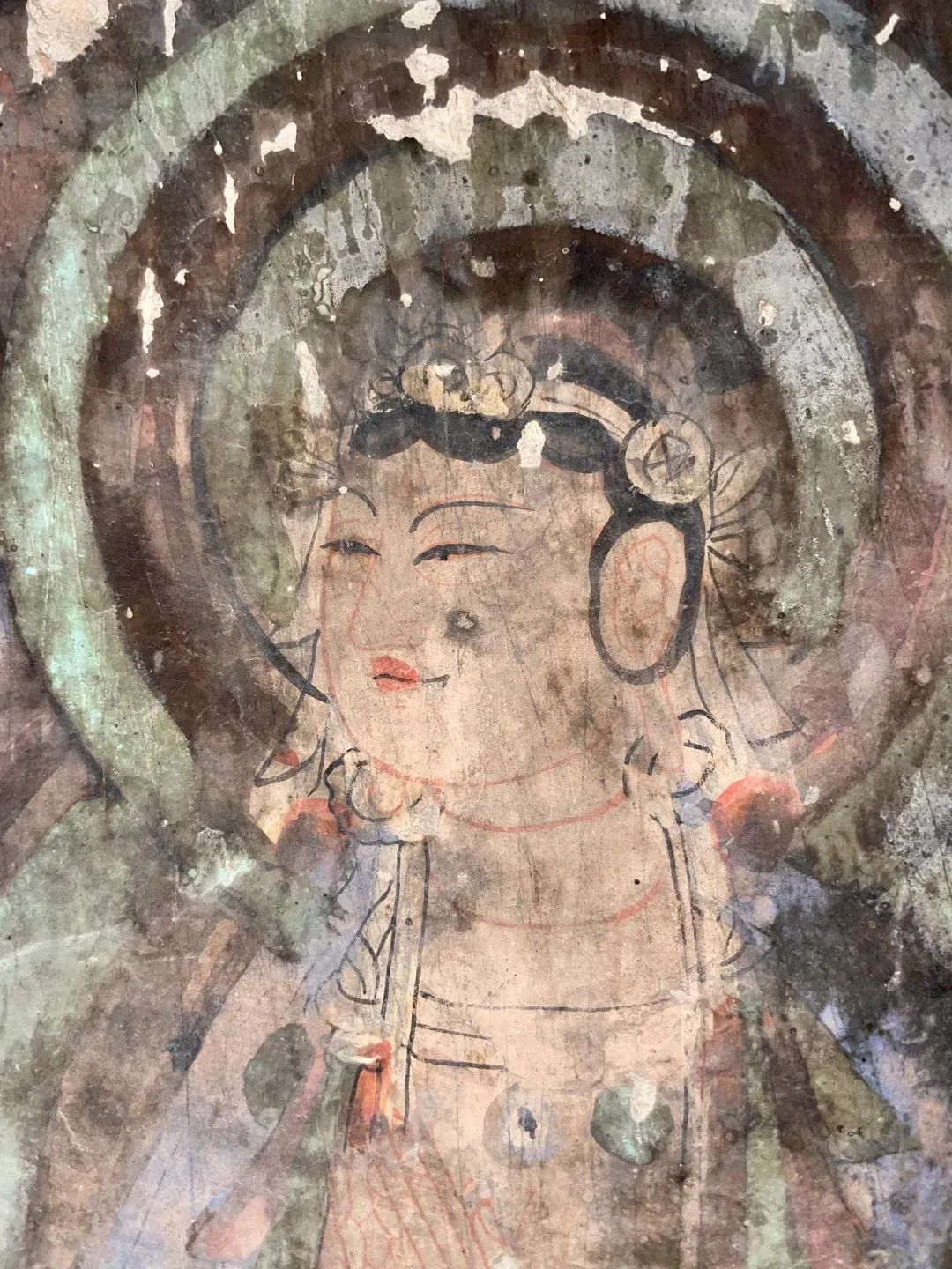 昌馬石窟第1、2、4窟表層西夏時期所繪壁畫的內(nèi)容,用色及菩薩的服裝等極接近敦煌莫高窟第328、327窟和榆林窟第17窟西夏壁畫。其用筆比較端莊拘謹(jǐn),不似唐代自由流暢;用色以赭紅、大綠為主;人物造像尤其是菩薩形象程式化,菩薩衣飾華麗復(fù)雜,但神態(tài)略顯呆板,不似唐代優(yōu)美生動和神采煥發(fā);裝飾圖案繁縟化,這些都與敦煌莫高窟、瓜州榆林窟、肅北五個廟同時期的壁畫具有統(tǒng)一的時代風(fēng)格。