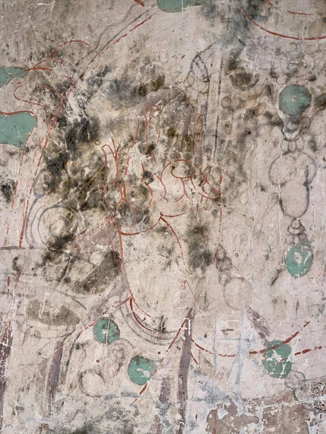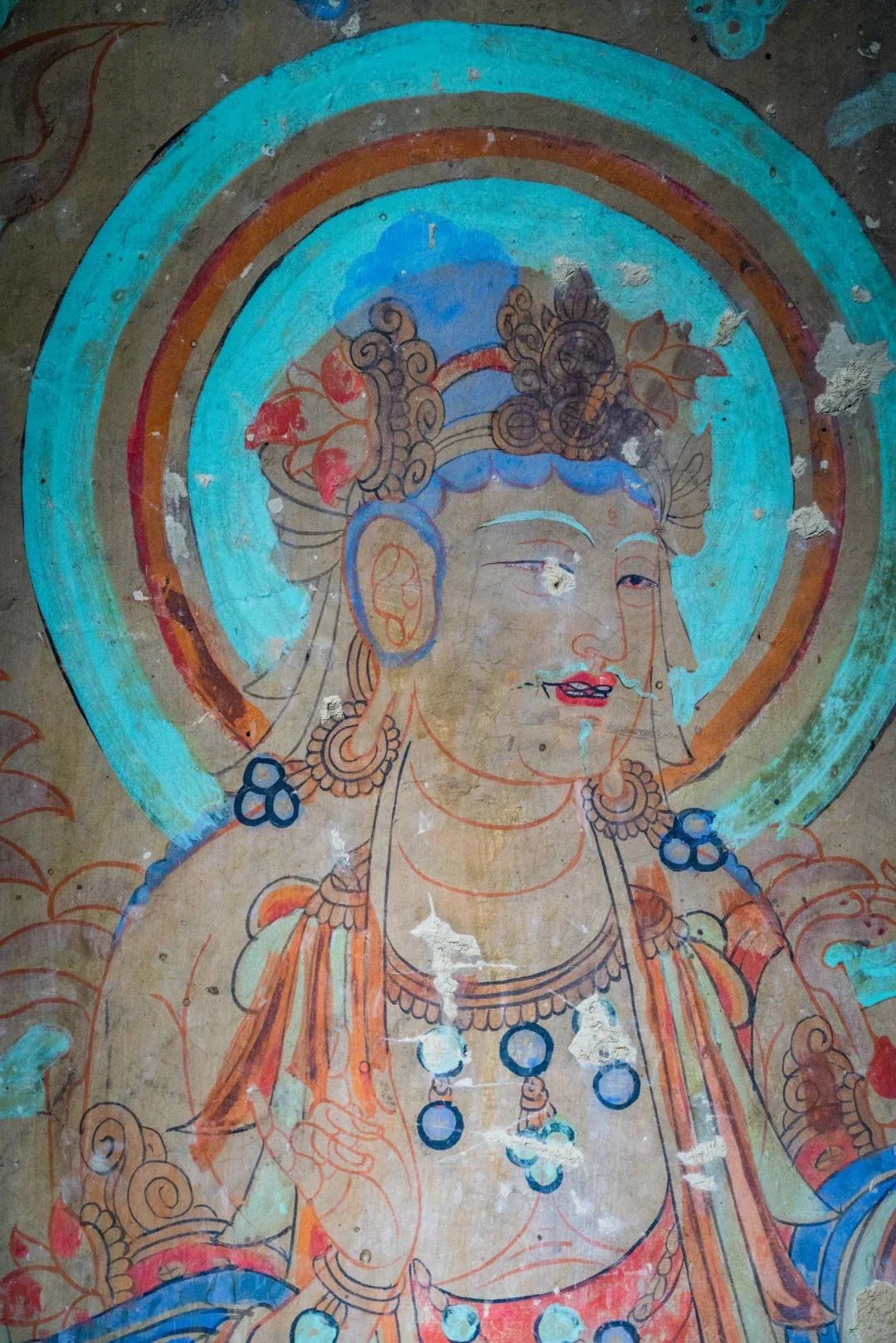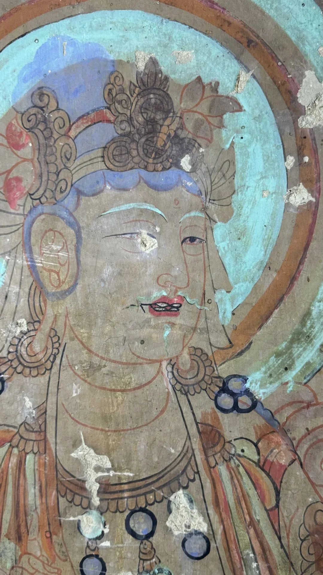 昌馬石窟第1、2、4窟表層西夏時期所繪壁畫的內(nèi)容,用色及菩薩的服裝等極接近敦煌莫高窟第328、327窟和榆林窟第17窟西夏壁畫。其用筆比較端莊拘謹(jǐn),不似唐代自由流暢;用色以赭紅、大綠為主;人物造像尤其是菩薩形象程式化,菩薩衣飾華麗復(fù)雜,但神態(tài)略顯呆板,不似唐代優(yōu)美生動和神采煥發(fā);裝飾圖案繁縟化,這些都與敦煌莫高窟、瓜州榆林窟、肅北五個廟同時期的壁畫具有統(tǒng)一的時代風(fēng)格。