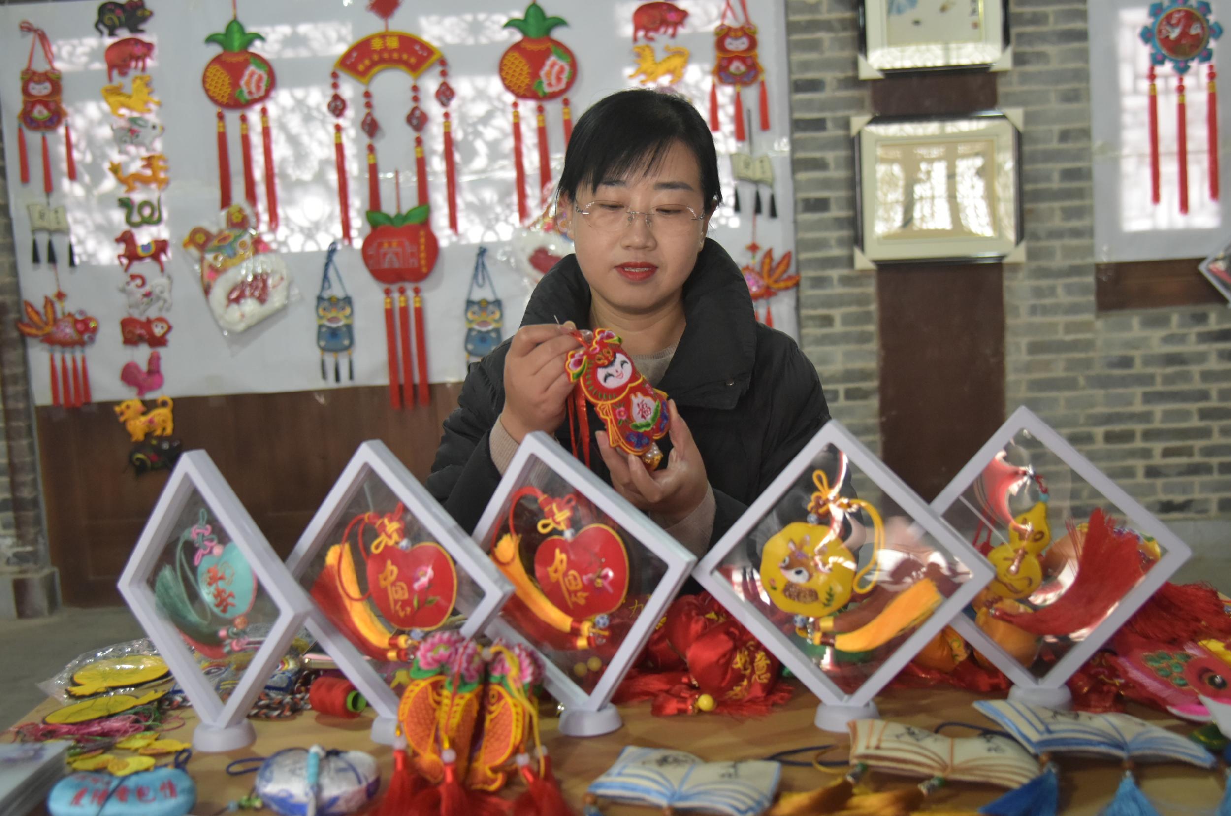 除了剪紙,鎮(zhèn)原縣香包、刺繡、書法等傳統(tǒng)文化藝術氛圍也很濃厚,深受廣大群眾喜愛。在文化一條街,十幾家書畫、香包、刺繡工作室緊挨,組成了一條文化長廊,除了銷售文創(chuàng)產(chǎn)品外,還承擔著非遺文化傳承和技藝培訓,熱鬧而又成氣候。“作為一名非遺傳承人,不僅要把自己的香包刺繡產(chǎn)品設計好、做精致,更重要的是要把這門技藝教給更多的人,讓香包、刺繡這門技藝更好地傳承下去。”慶陽香包刺繡非物質(zhì)文化遺產(chǎn)傳承人任艷艷說,自己在文化一條街已經(jīng)開店近十年了,帶出了很多巧媳婦巧婆婆,還不時受邀在縣內(nèi)外進行培訓指導。
