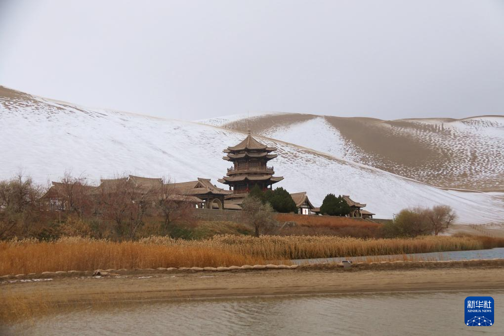 這是11月23日拍攝的敦煌市鳴沙山月牙泉景區(qū)雪景。新華社發(fā)(張曉亮 攝)