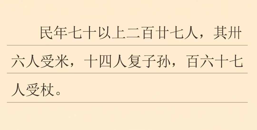 對民眾而言,朝廷的福利制度更是能帶來許多切實(shí)的好處。根據(jù)甘肅簡牘博物館所藏這枚養(yǎng)老簡,漢代的民眾養(yǎng)老制度主要內(nèi)容首先為王杖制度,即賜王杖,是從政治、法律與社會(huì)地位方面給予優(yōu)待;其次為高年復(fù)除,八十復(fù)算,可以幫子孫免除算賦;最后為受鬻法,即在仲秋八月發(fā)放粥米。簡文中所提到的這227名老人,分別享受以上各個(gè)優(yōu)待。