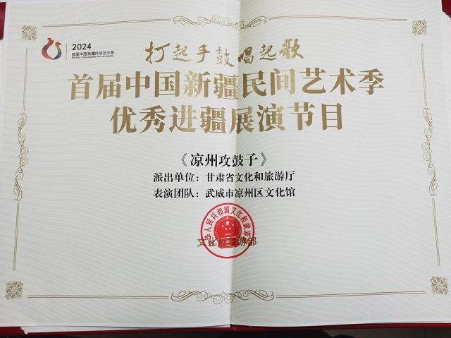 《涼州攻鼓子》入選首屆中國新疆民間藝術季優(yōu)秀進疆展演節(jié)目