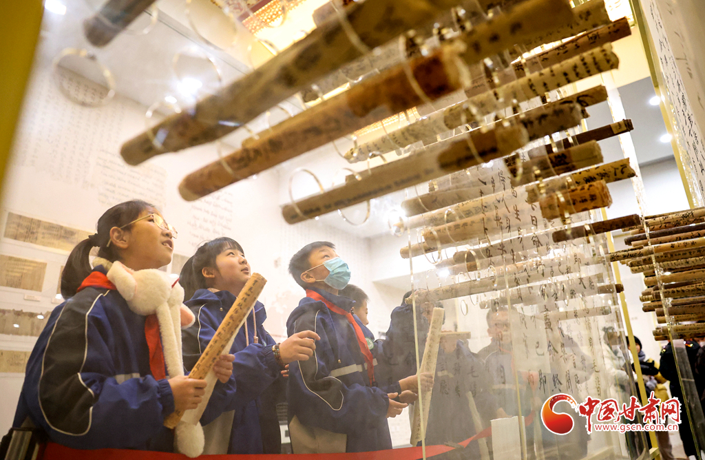 12月29日,蘭州市城關區(qū)安樂村小學學生在家人的陪同下來到敦煌研究院蘭州分院敦煌藝術館,欣賞“覺色敦煌 莫高精神”敦煌石窟藝術展,在周末時光近距離感受敦煌文化藝術的魅力。