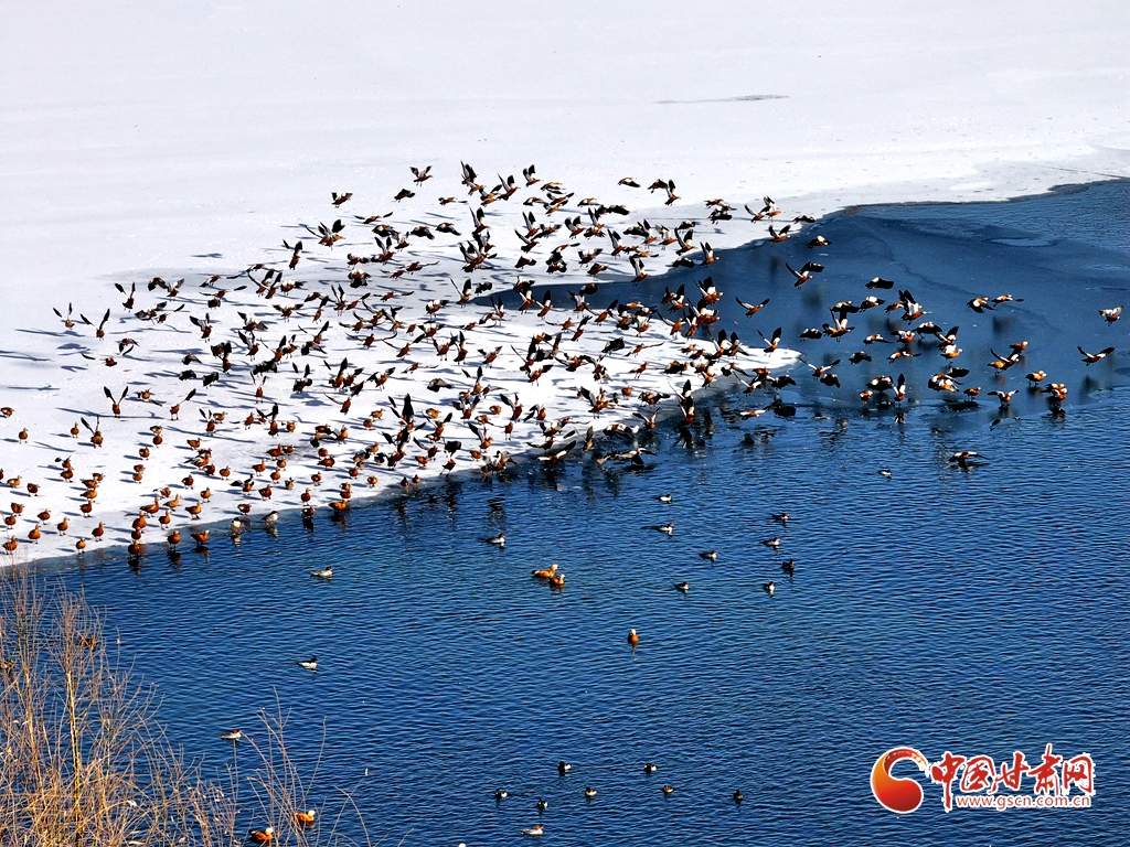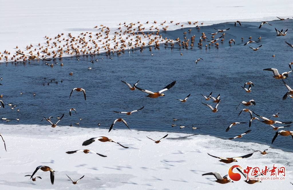 1月11日,甘肅省張掖國(guó)家濕地公園里,成群的赤麻鴨棲息覓食,成為濕地一道亮麗風(fēng)景。