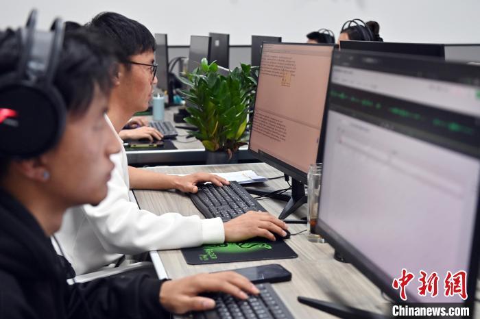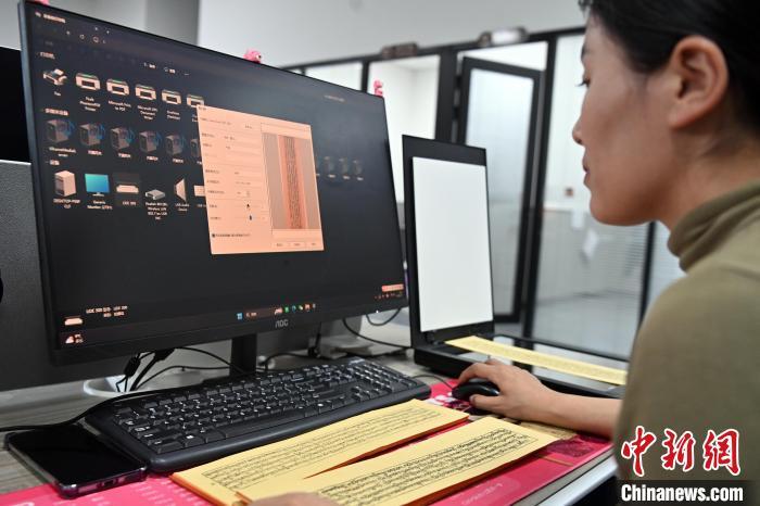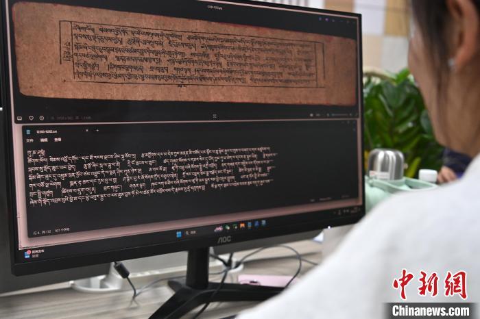 2月27日,在甘肅甘南藏族自治州碌曲縣益西達吉科技有限公司內(nèi),工作人員正在進行藏文古籍?dāng)?shù)字化相關(guān)工作。該公司主要從事民族古籍?dāng)?shù)字化建設(shè)和古籍文獻數(shù)據(jù)庫建設(shè),自2019年以來,承擔(dān)西藏、四川、甘肅等省區(qū)的藏文古籍?dāng)?shù)字化項目。圖為工作人員用該公司研發(fā)的藏文信息處理系統(tǒng)對古籍?dāng)?shù)字化內(nèi)容進行檢查。中新社記者 九美旦增 攝
