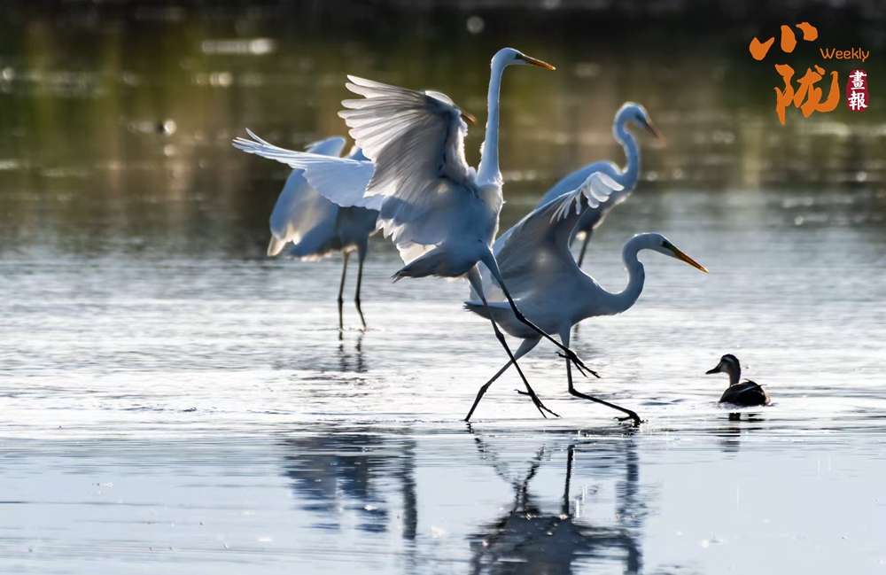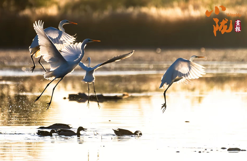 湖中的白鷺翩翩起舞,嬉鬧翻飛,歡快鳴叫,有的停落湖岸,有的游向湖心,有的翻飛空中,為游客帶來無盡的歡樂??带B兒們嬉鬧,仿佛回到童年時(shí)代。自由、自在、生機(jī)無限,讓每個(gè)人感受到無窮的生命力量。