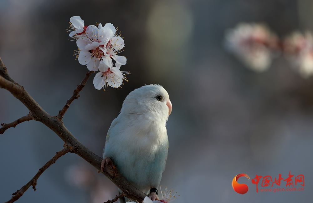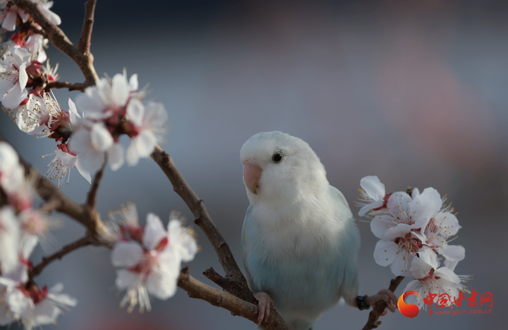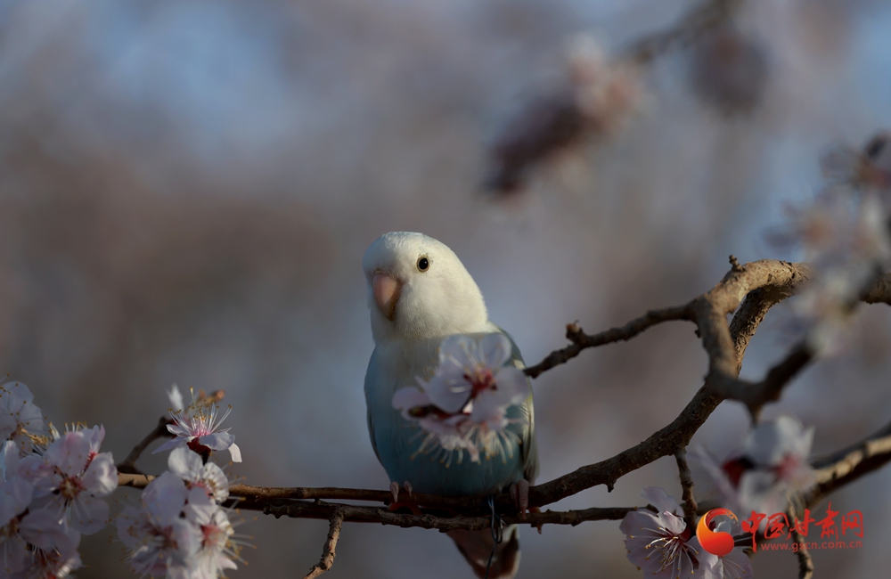 隴拍客|金塔:杏花枝頭鸚鵡鬧