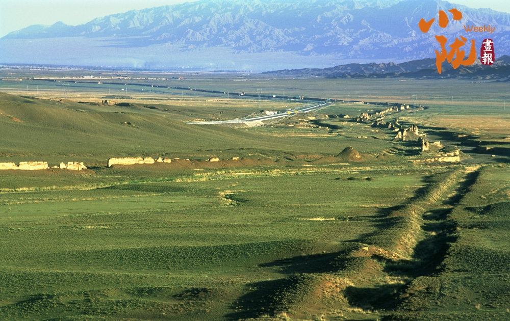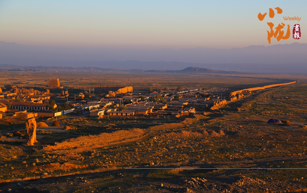 在黛藍色山脈的映襯下,漢明長城蜿蜒并行,高于地面的黃色城墻是明長城,而顏色稍深的壕溝是漢長城,兩條跨越千載的古長城最近處不過十余米,仿佛攜手講述著遠古的故事……它們也猶如兩位忠誠的衛(wèi)士,守護著這片古老的土地,也見證了絲綢之路的興衰變遷。