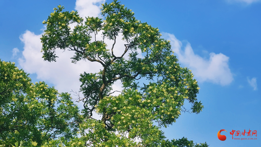 盛夏時節(jié),崇信縣錦屏鎮(zhèn)關河村的“華夏古槐王”迎來盛花期。3200歲的“活文物”枝頭繁花似雪,與隴東南的青山黛色相映成趣。