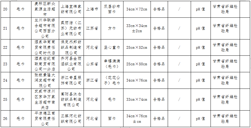 甘肅省市場監(jiān)管局公布26批次不合格產(chǎn)品抽檢情況