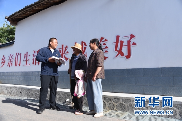 8月5日,元古堆村內(nèi),村支書(shū)朱惠軍正在進(jìn)行普法工作。新華社記者 崔翰超 攝
