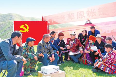 肅南縣司法局發(fā)揮“草原帳篷講堂”靈活性強、機動性大、便利性好的特點,結合黨史學習教育為群眾上黨課,講憲法(2021年4月拍攝)。